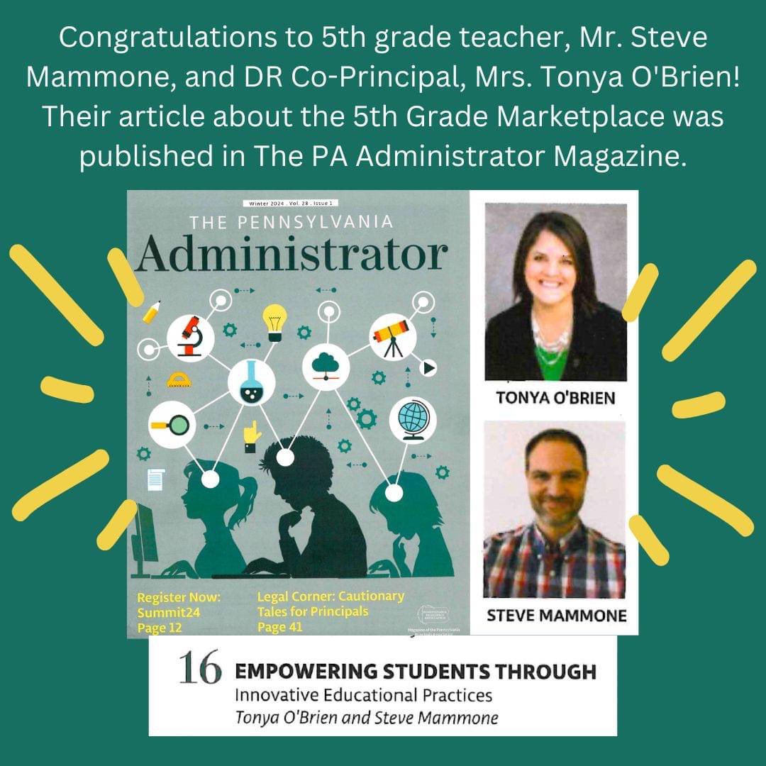 Congratulations to 5th gr. teacher, Mr. Mammone, and DR Co-Principal, Mrs. O'Brien! Their article about “Empowering Students” was published in the PA Administrator Magazine - Winter 2024, Vol. 28. Visit our District News page to read the article: basd.k12.pa.us/DistrictNews.a…