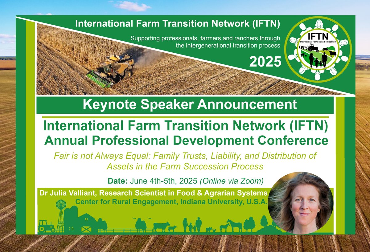 Registration for our IFTN Annual Conference 2025, taking place from June 4th to 5th, is now open! 'Fair is not Always Equal: Family Trusts, Liability, and Distribution of Assets in the Farm Succession Process'. Please find the registration link here: extension.sdstate.edu/event/internat…