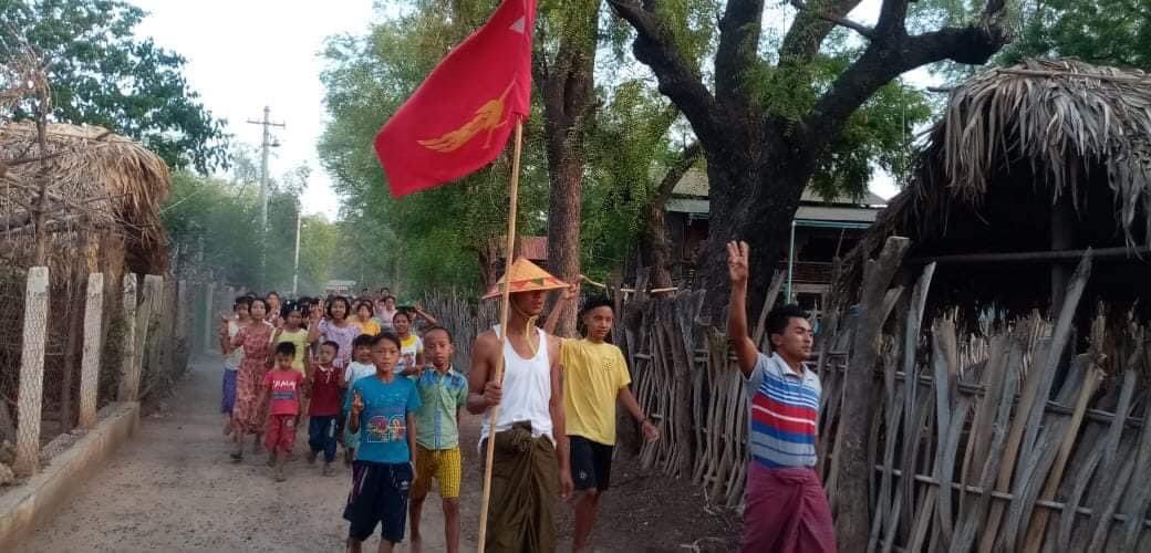 Residents from Kyout Phyu Tine village, #Salingyi tsp protest Against Military Rule in the evening of May 27. #May27Coup #WhatsHappeningInMyanmar