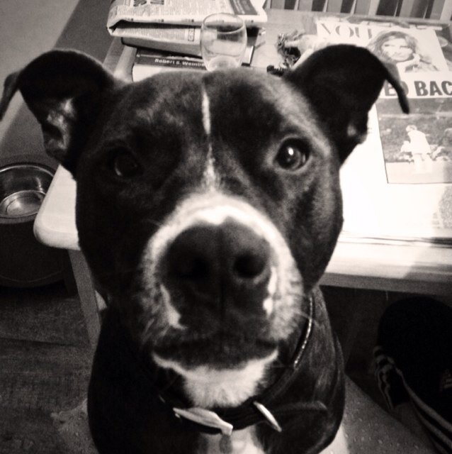 Part Olde English Part English. People mistake me for a Pitbull Puppy. I love 🍌 and peanut butter, 🥚 yolks, rotisserie 🍗,🍉, 🧀 and Abby 🥩