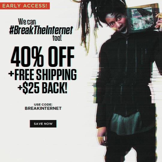 #CyberMonday over at Karmaloop! Use repcode:CUPCAKE23 +code: BREAKTHEINTERNET! Kim K ain't nothin! #breaktheinternet