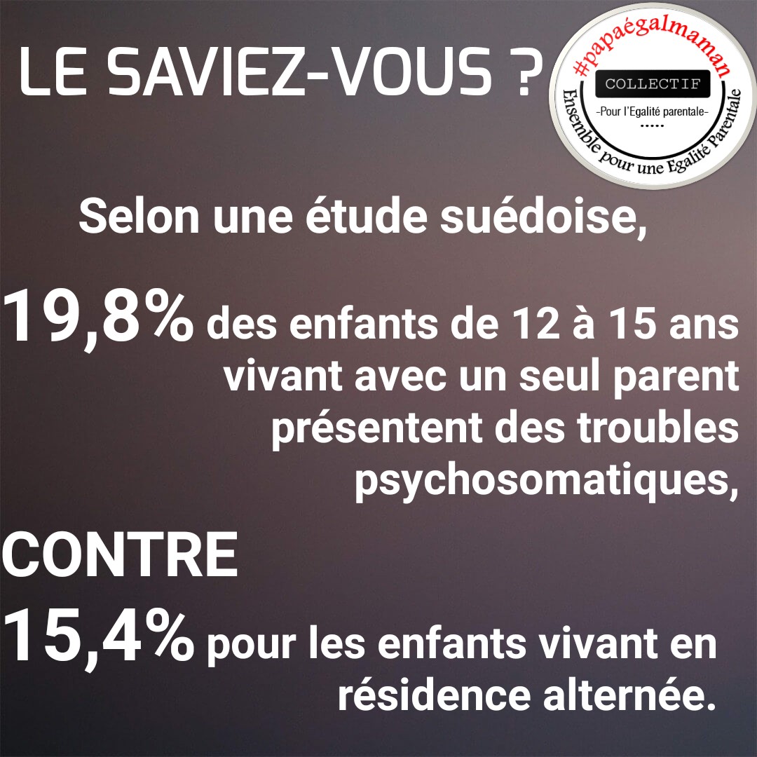 Quand notre justice familliale prendra-t'elle en compte le bien être psychologique de nos enfants en pérénisant la garde alternée au lieu de cette logique archaïque au détrimant de l'un ou l'autre parent? #papaégalmaman