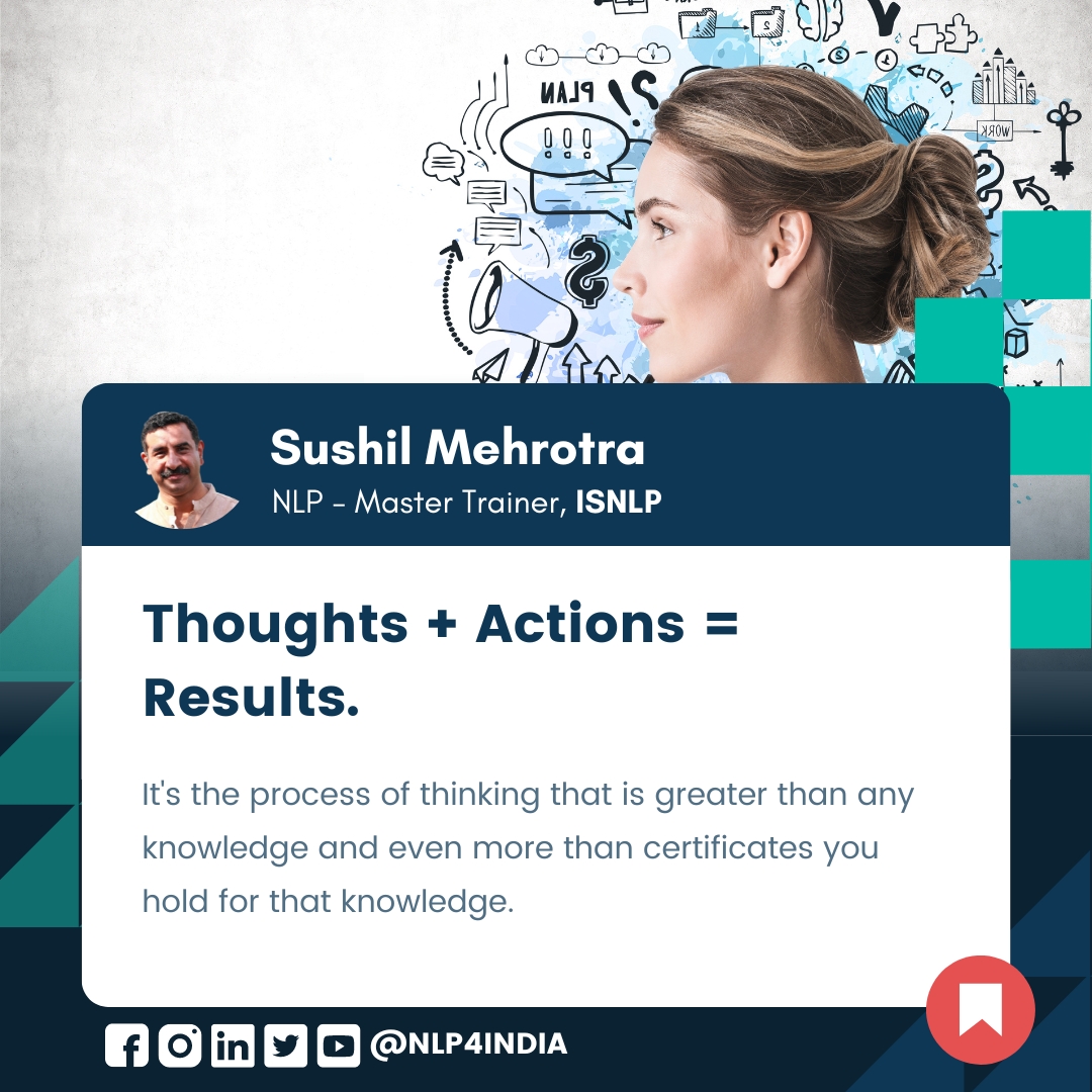 The results we experience in life are largely determined by our thoughts and actions. Our thoughts can influence our decisions and behaviour, leading us to take certain actions. For details, visit NLP.pw |NLP4India.in