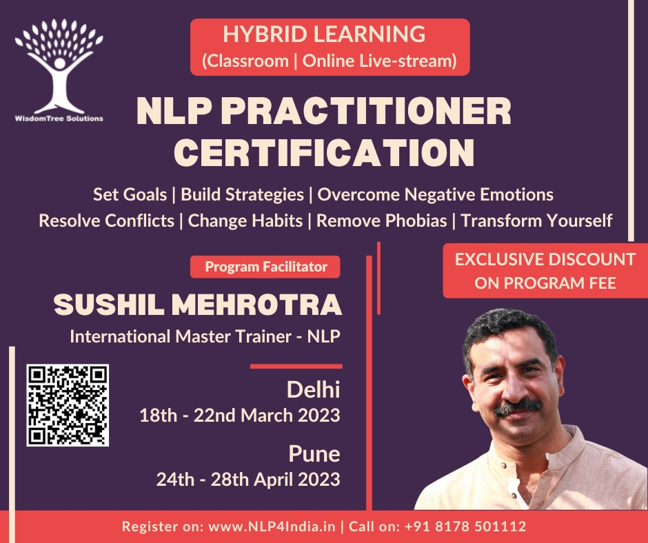 Our next NLP Practitioner Certification and Advanced NLP Practitioner Certification is scheduled to begin on 4th May until 8th May 2023 in Pune, Maharashtra. For more details, please call +91 81785501112 or mail us at [email protected]