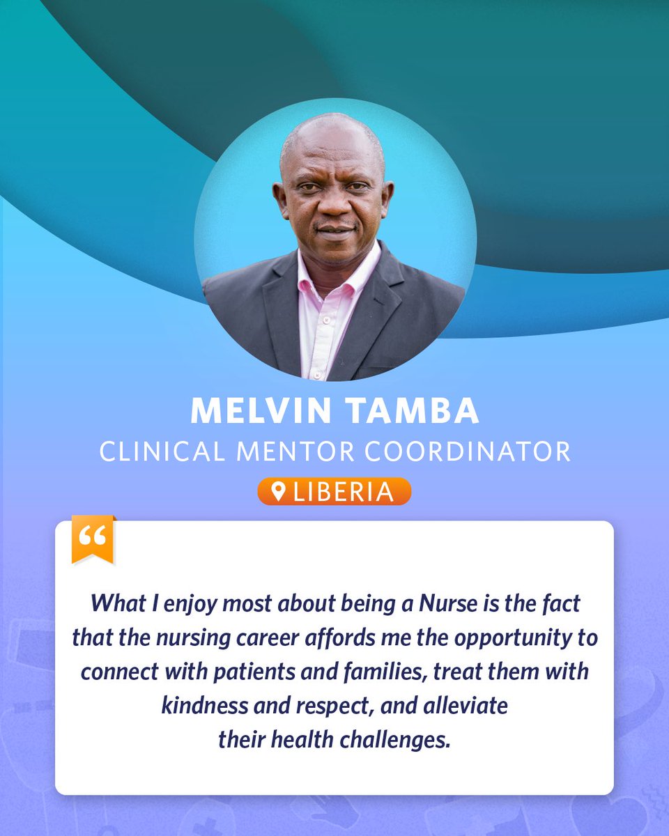 Melvin Tamba, clinical mentor coordinator in Liberia. "What I enjoy most about being a Nurse is the fact that the nursing career affords me the opportunity to connect with patients and families, treat them with kindness and respect, and alleviate their health challenges." 7/