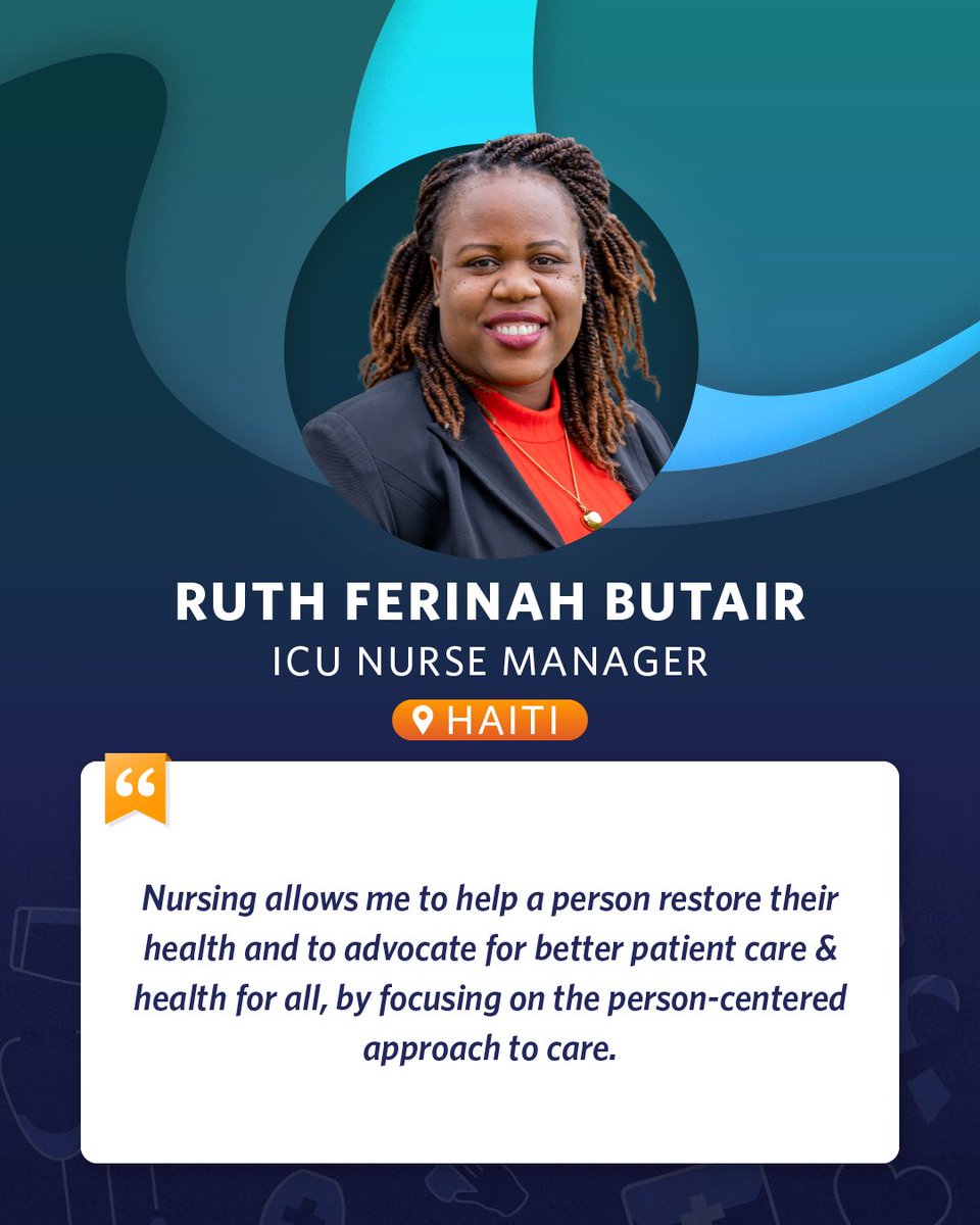 Meet Ruth Ferinah Butair ICU nurse manager in Haiti. "Nursing allows me to help a person restore their health and to advocate for better patient care & health for all, by focusing on the person-centered approach to care" 6/