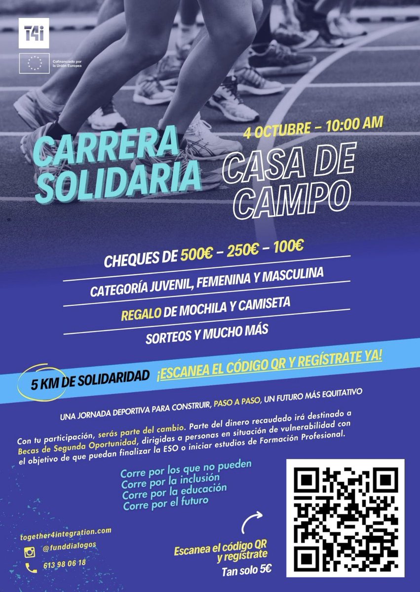 🏃♀️✨ ¡Corre por la inclusión y el futuro! ✨🏃♂️ 📅 4 OCT | 10:00 | Casa de Campo (Madrid) 🎽 Dorsal + camiseta + mochila + sorteos 🎁 por solo 5 € 👟 Recorrido 5 km | 🏅 Premios en metálico ℹ️ pulsaciones.net/carreras/04-10… #CarreraSolidaria #Madrid