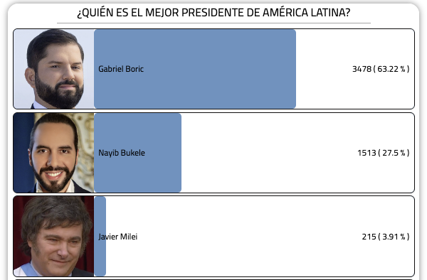 🔴ÚLTIMA HORA: Presidente Boric de Chile arrasa en encuesta online EPCH "¿QUIÉN ES EL MEJOR PRESIDENTE DE AMÉRICA LATINA?" eleccionespresidencialeschile.cl/alatina/ #boricestamoscontigo