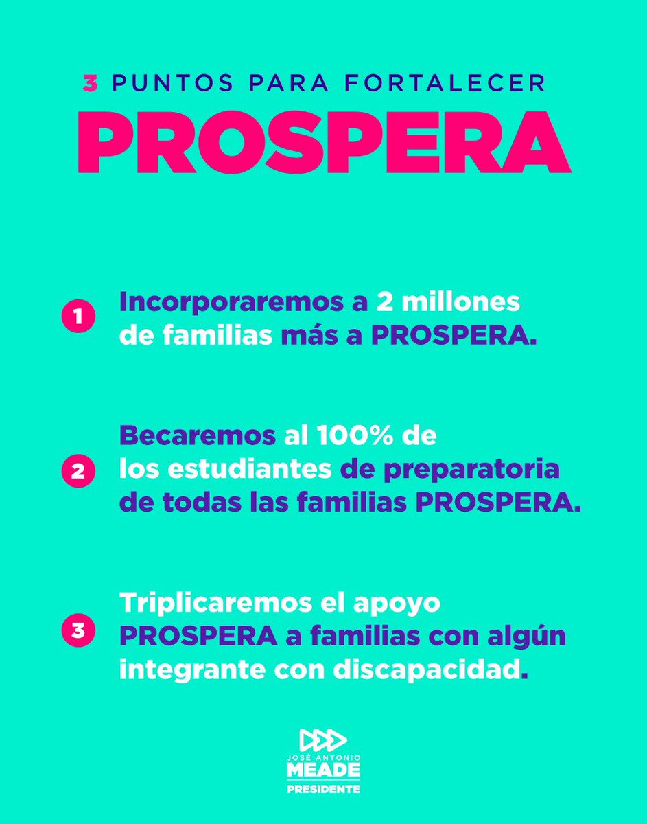 Como Presidente, trabajaré para que en cada familia y en cada hogar exista un piso parejo de acceso y de oportunidades. Impulsaré la mayor ampliación e incremento en la historia del Programa #Prospera.