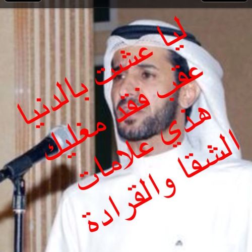 اعْرف توالي جرّتك و اعْرف اقصاك و اقدر اجيبك في ثواني .. و اردّك ما تستر اخوانك ولا تخوّف اعداك ولا هم يعدّونك .. على شان اعدّك خوف الله بنفسك ترى الظلم يفناك اعرِف حدود الناس .. و اختار حدّك والله يا لو يطْلع من القبر ينخاك جدّك..فلا ترثى على صوت جدّك #محمد_الشمري