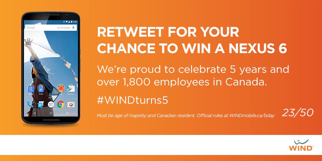 WIND #BirthdayGift! RT this post in the next 5min for a chance to win the 29th #Nexus 6!