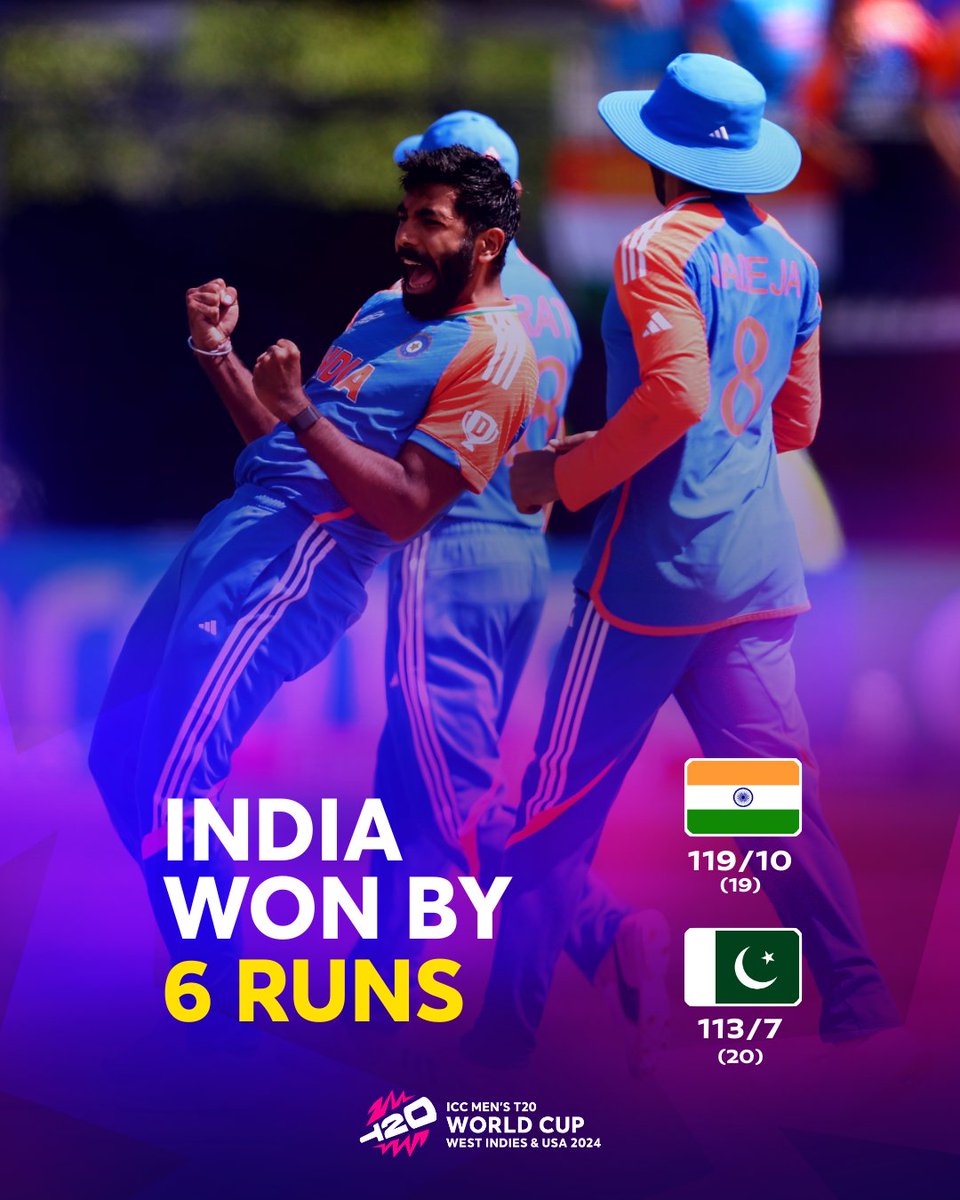 🇮🇳 WIN in New York 🔥 Jasprit Bumrah's superb 3/14 helps India prevail in this iconic rivalry against Pakistan 👏 #T20WorldCup | #INDvPAK | 📝: bit.ly/4aPk1kk