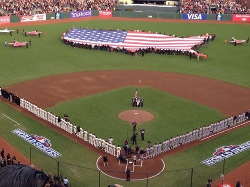 Crowds are swelling #sfgiants (@ SF Giants Parade Route, Market & Sutter w/ 41 others) [pic]: 4sq.com/SxiLaC