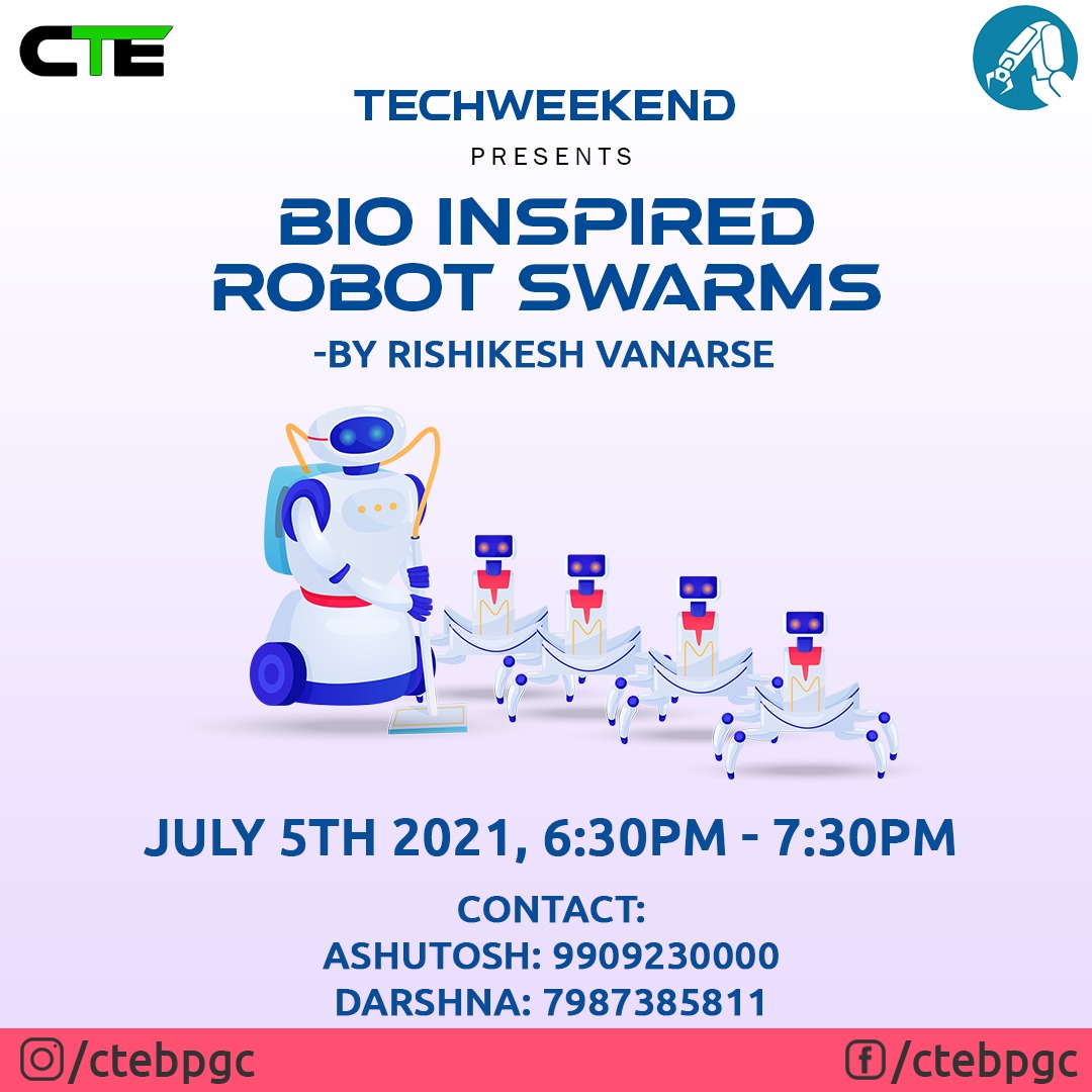I will be speaking on Bio-inspired robot swarms on Monday, 6:30pm. The talk will focus on how behaviours in colonies of birds/ insects give us insights on how simple algorithms on robots can lead to complex emergent behaviours. The talk is organized by @erc_bpgc and @CTEBPGC
