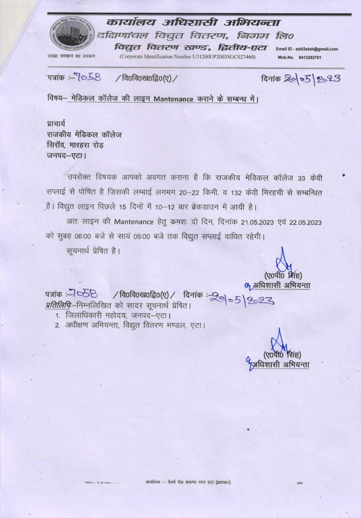 No electricity since 6 in the morning, and till now no update and no electricity Concerned please take the necessary action without causing any more trouble to medical college, Etah