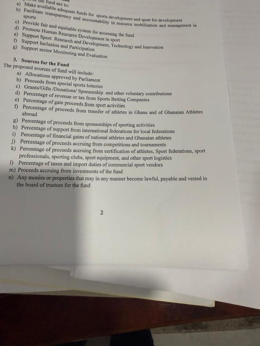 The document below clearly outlines the sources of funding for the Sports Development Fund and does not mention any levies. Source: Felix Fosu Kwakye, Minister of State, in charge of Government communications