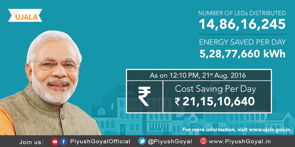 14 Cr.+ LED bulbs distributed under UJALA saving precious energy, lowering consumer bills & CO2 emissions.