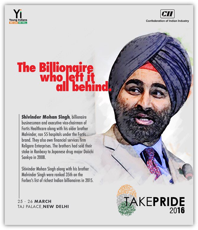 Meet billionaire Shivinder Mohan Singh who quit Fortis to adopt Path of Giving at #YiNationalSummit #takePRIDE 2016!