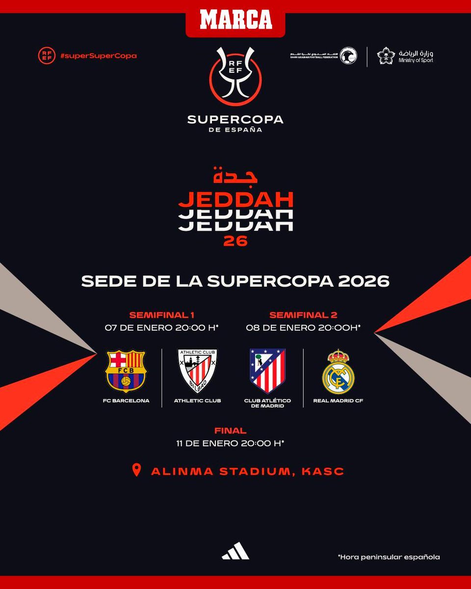 Jadwal Piala Super Spanyol sudah dikonfirmasi! Semifinal 1 Barcelona vs Athletic Bilbao Kamis, 8 Januari 2026 Pkl. 02:00 WIB