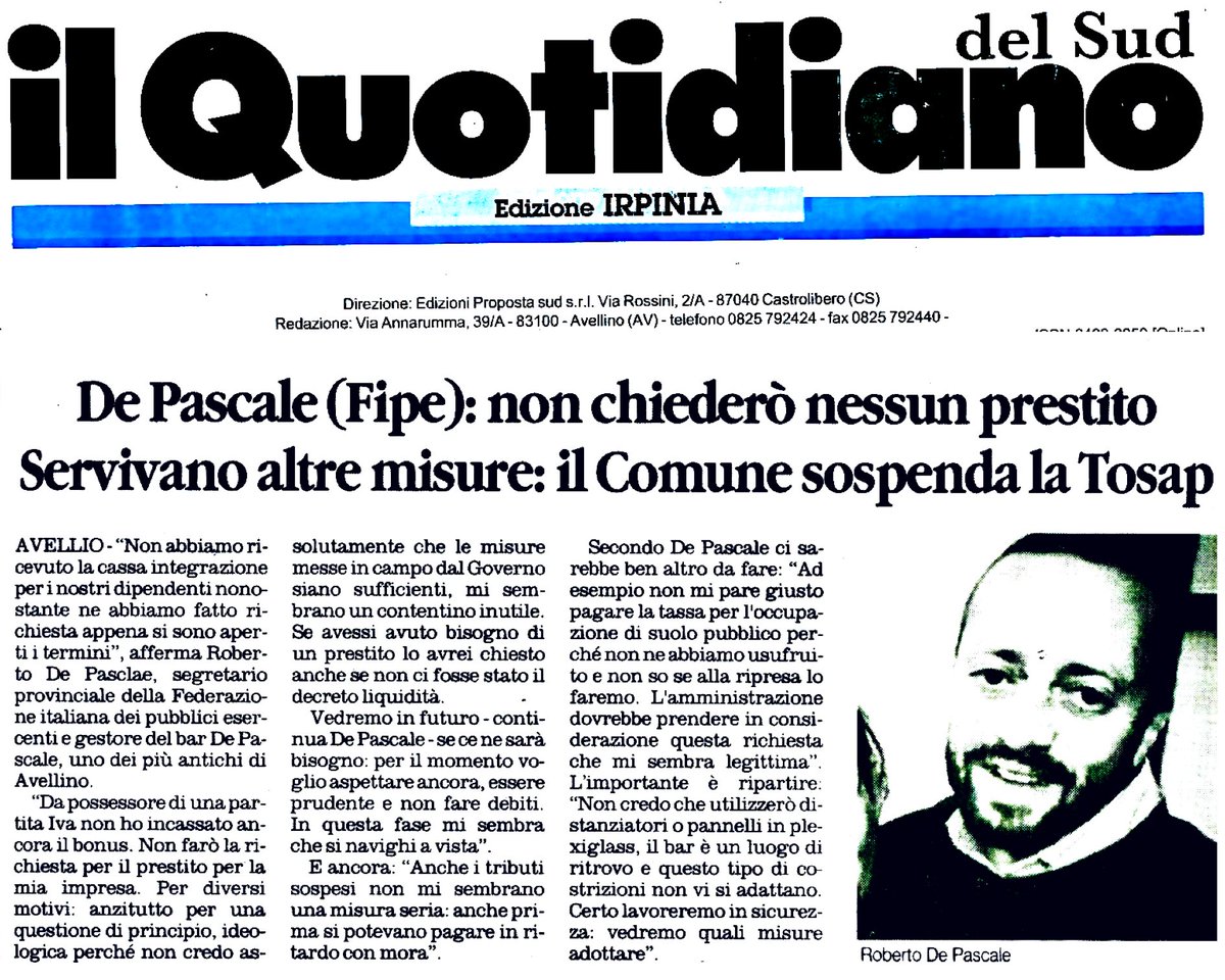 A scanso di equivoci, tengo a precisare che non sono più segretario provinciale FIPE avendo formalizzato mie dimissioni irrevocabili.