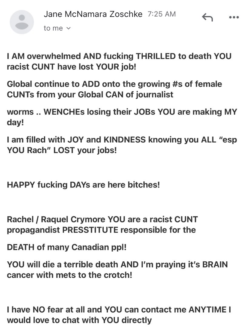 #Canada: #CFWIJ is astonished at @globalnews decision to lay off at least four talented women journalists. Including award-winning @atRachelGilmore whose reporting for the outlet led to death threats. We stand in solidarity with those let go & demand an explanation from @CorusPR.