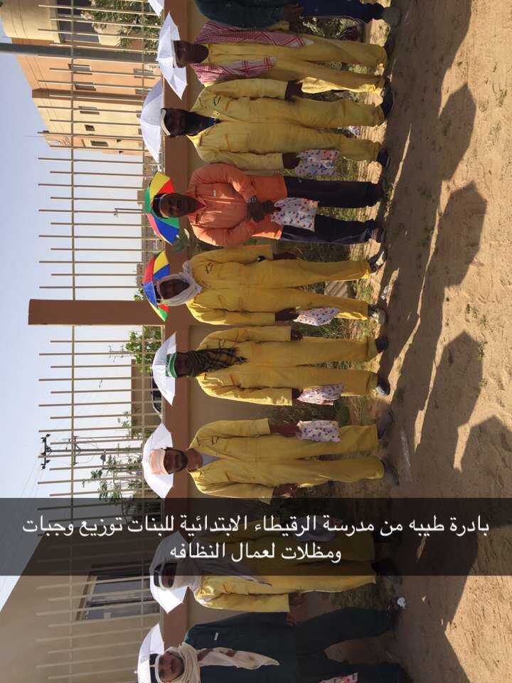 بادرة طيبة من مدرسة الرقيطاء الابتدائية للبنات توزيع وجبات ومضلات لعمال النظافه ببلدية النقيع شمال #بيشة
