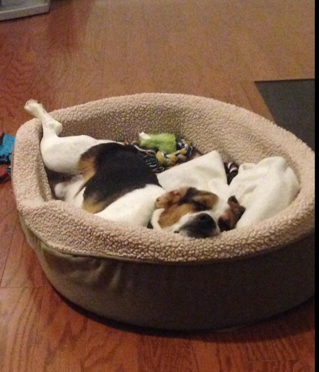 Someone has become very accustomed to indoor dog life. #pokylittlepuppy #dogsrulemyhome #puppylife instagram.com/p/s7wOOtkb9p/