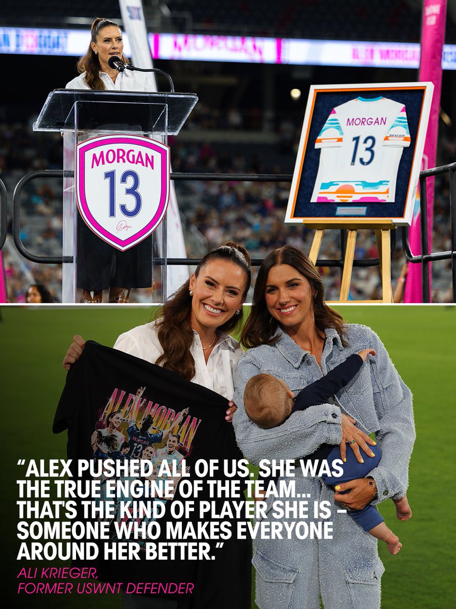 A moment for the game, a moment for the sisterhood š¤ Ali Krieger celebrating Alex Morganās legacy at her jersey retirement. Read more: bit.ly/4nhhhmk