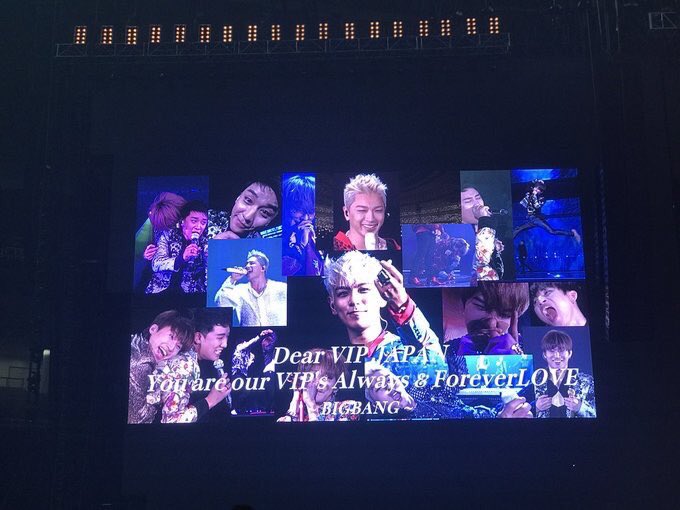 BIGBANG JAPAN DOME TOUR 2017 「LAST DANCE」無事に全公演が終了しました。 たくさんの感動をありがとうございました。 次は何年後になるのか分かりませんが 「5人で必ず帰って来ます」この言葉を信じて 変わらない愛、気持ちで待ち続けます!! VIP JAPANはいつまでもBIGBANGを愛してます