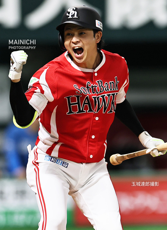 パ・リーグ首位攻防戦 ソフトバンクが逆転で日本ハムを降しました 写真は八回裏、勝ち越しとなる押し出し四球を選び、拳を握る川瀬晃 写真特集⚾️mainichi.jp/graphs/2025091…