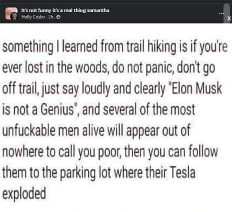 My son, who is a software engineer, just told me that people who know software just had their Elon Musk realization.