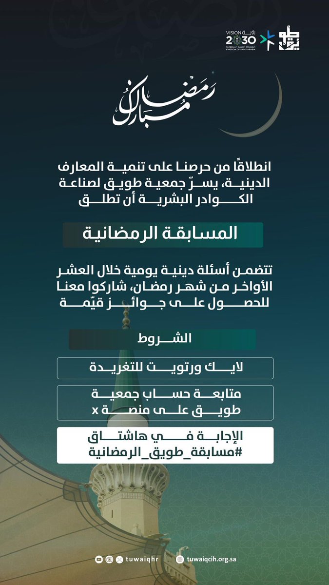 5K Followers 70 Following #جمعية_طويق لصناعة الكوادر البشرية في #المنطقة_الشرقية - مسجلة برقم ترخيص 1000581800 - رسالتنا : تنمية وتطوير القدرات الوطنية وفق أفضل المعايير العالمية .