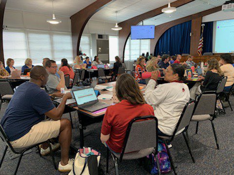 Today's staggered start for K meant teachers could come together for ELI training before heading out on home visits! ACS supports building positive relationships! @NCDPI_OEL ##youbelonginACS#ACSCougarPride