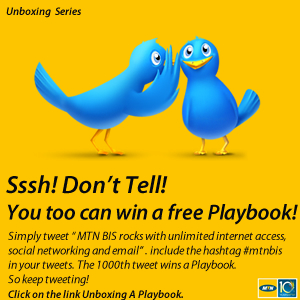 Just tweet :“MTN BIS rocks with unlimited internet access, social network and email #mtnbis”. The 1000th tweet wins a BlackBerry Playbook!!