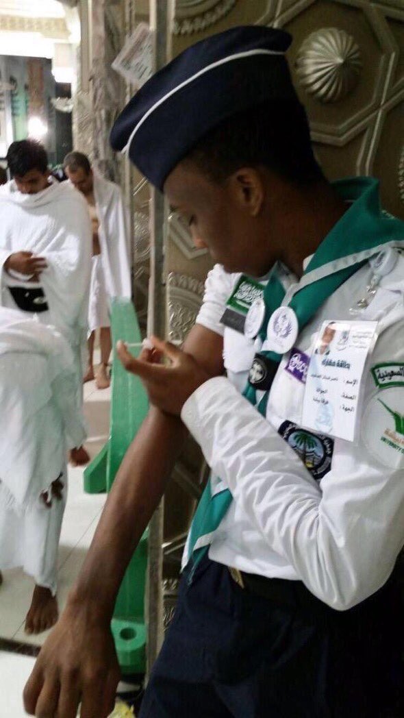 في مشهد رائع ومُبهج.. ضيوف الرحمن يودعون رجال الأمن ويشكرونهم على جهودهم في #نجاح_موسم_الحج . . . #شكرا_رجال_الامن -