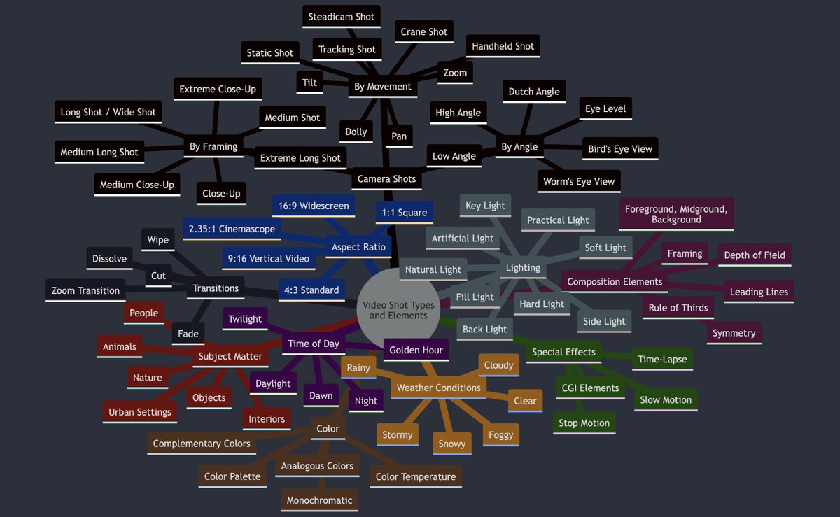 Claude is so good Prompt: -------- I am using a video generator Please give me a map of all the different types of shots and things I can enter for my prompt. Output --------