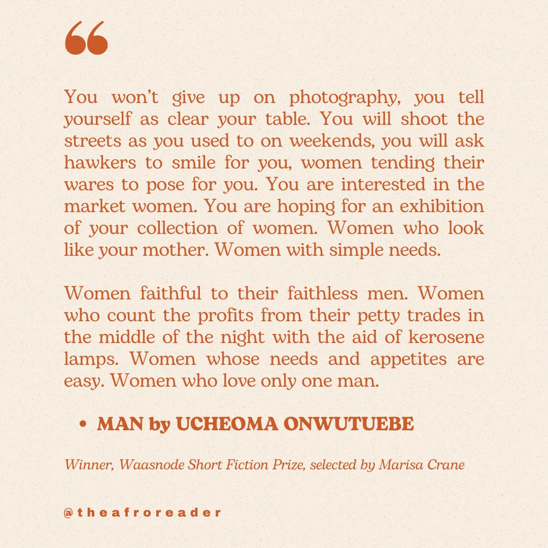 I'm trying to read more short stories this year. I'll be sharing my favourite ones every week! 1) MAN by Ucheoma Onwutuebe @ucheomar passagesnorth.com/issue-44/man-b…