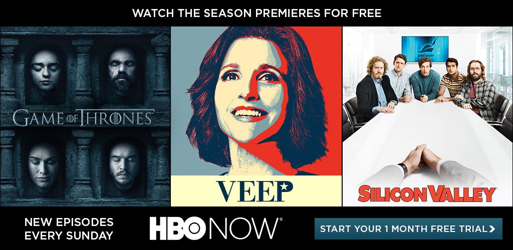 Catching up? Watch the Season Premieres of @GameOfThrones @VeepHBO @SiliconHBO now on Amazon amzn.to/1sHTilm