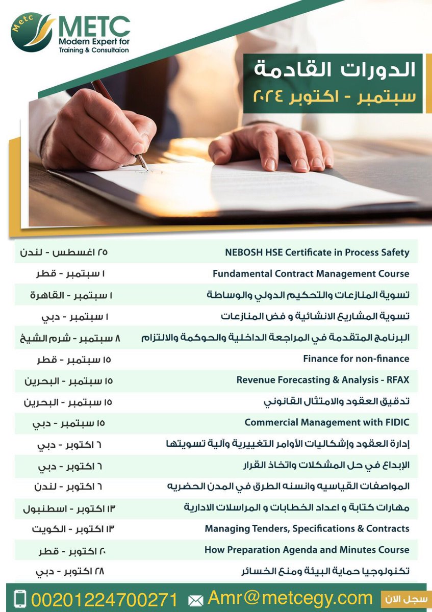 #دورات #مؤكده #ماليه #بيئه #قانون #تحليل_مالى #اداره #امن_وسلامه #سكرتاريه #legal #Adminstration #financial #health_and_Saftey #Risk_management #FIDIC #Courses للحجز و الاستعلام [email protected] 00201224700271