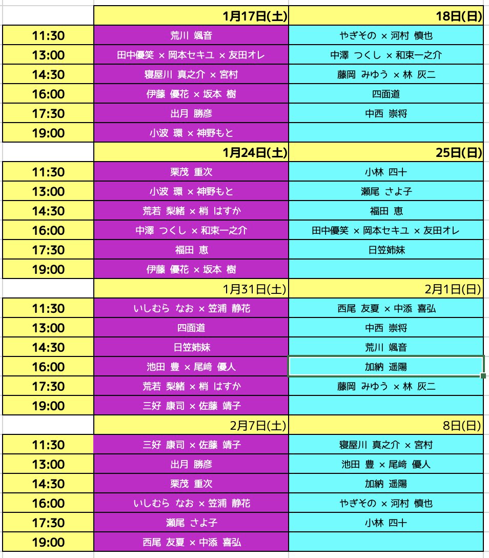 【出演者】五十音順 ・荒川 颯音(あらかわかざね)@mine7853【スーパニカ/冷蔵庫ポルカ】 ・荒若 梨緒@araw_aka_tete【劇団MOYU】× 梢 はすか@yusei_d_【遊星D】 ・池田 豊@Ikeda167【優しい劇団】@yasashiigekidan × 尾﨑 優人@maezu0118【優しい劇団】 ・いしむら なお@not_campanella × 笠浦…