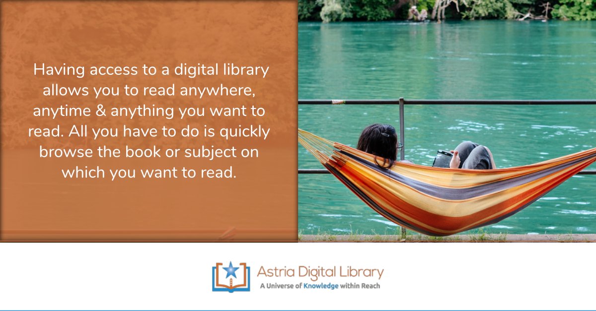 Having access to a digital library allows you to read anywhere, anytime & anything you want to read. All you have to do is quickly browse the book or subject on which you want to read. astrialibrary.com