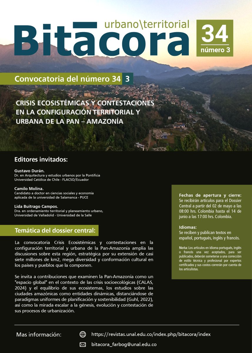 Estimados lectores, queremos compartir con ustedes nuestro la editorial del Vol. 33 Núm. 2 (2023): Infraestructuras ocultas que apoyan los procesos migratorios en América del Sur revistas.unal.edu.co/index.php/bita…