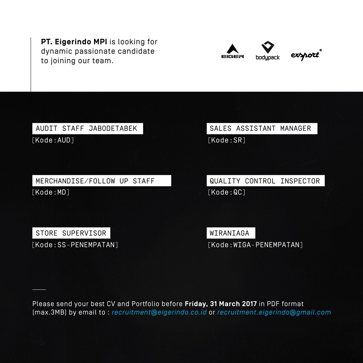 Ayo gabung dengan tim PT. EIGERINDO MPI facebook.com/bodypackid/pho…