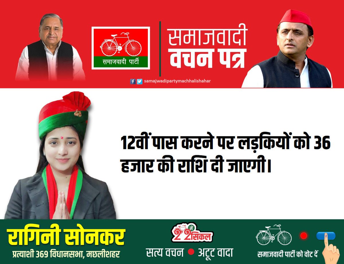 समाजवादी वचन पत्र सत्य वचन अटूट वादा @sonker_ragini13 #raginisonkar #369machhalishahar #22मेंबाईसिकल #samajwadipartyofficial #samajwadipartymachhalishahar #UPElections2022