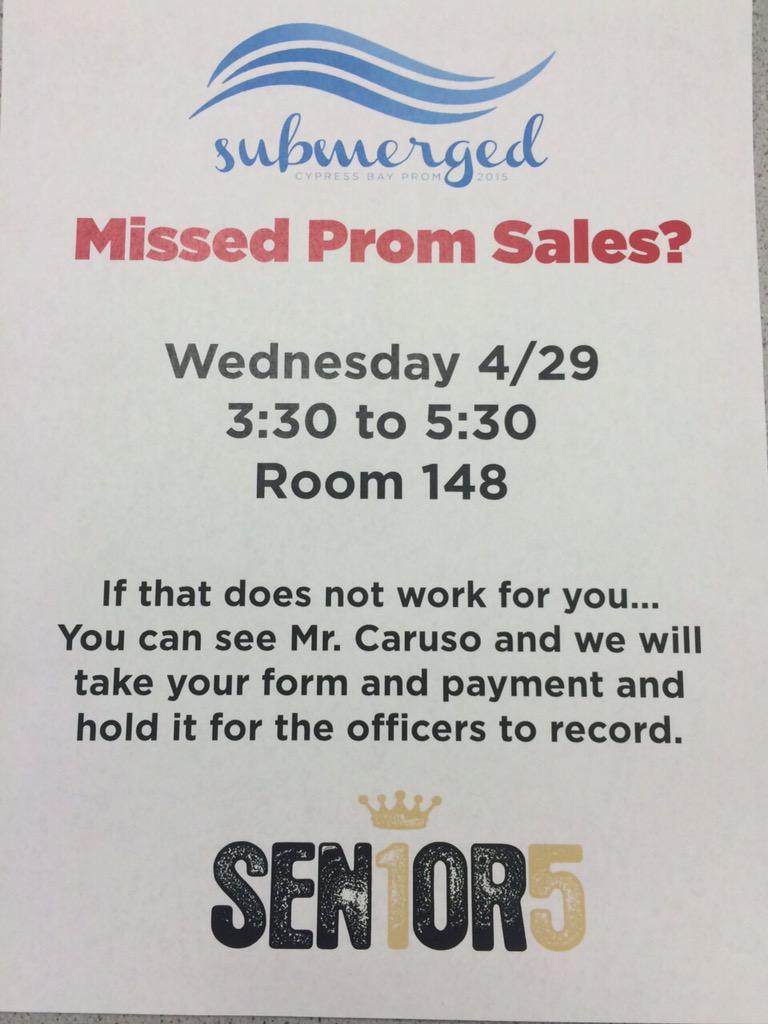 Go check at cypressbayseniors.com to fill out your forms! NO FORM=NO PROM TICKET! Also they must be notarized