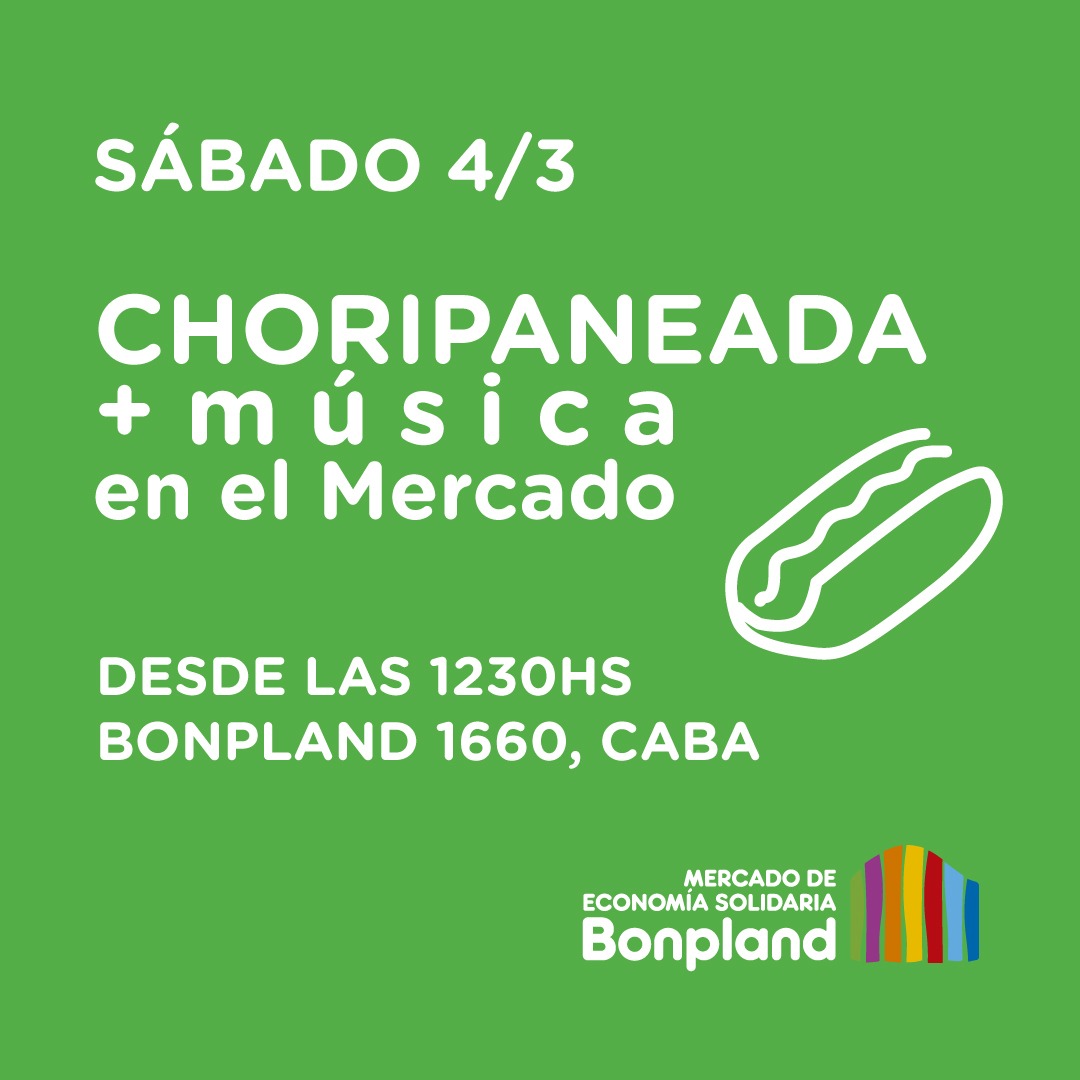Este sábado: choripaneada + música en vivo! Te esperamos en el Mercado de la Economía Solidaria de Bonpland (Bonpland 1660, CABA).