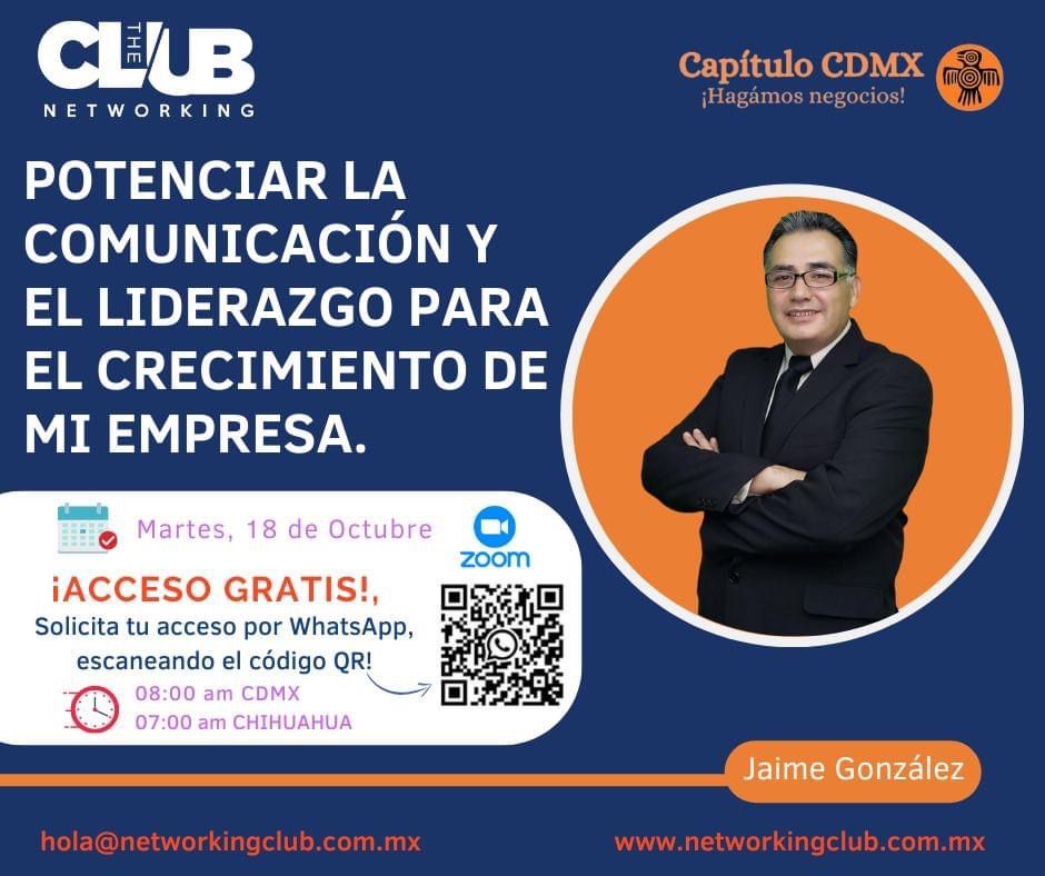 *La comunicación es un pilar en cualquier organización* Estas invitado a nuestra sesión de Networking CDMX, con la participación de nuestro socio el Ing. Jaime González, quien nos compartirá un capítulo de su experiencia empresarial. Registrate bit.ly/3UR9oqi