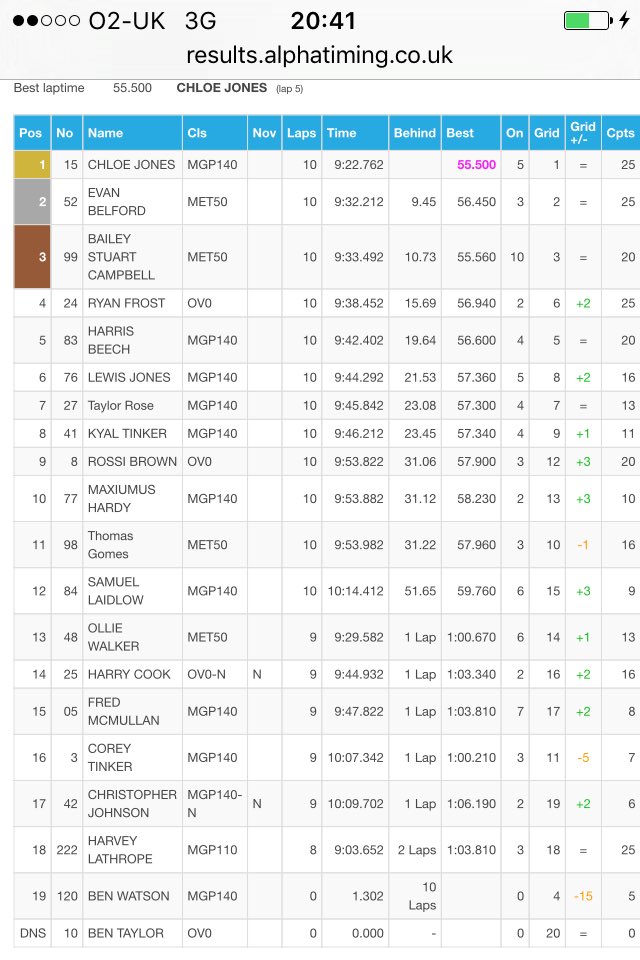 Mum just checked timings and I was across the line 18.87 seconds ahead of 2nd place. @ebcbrakesuk @CircuitElec @fuchs_silkolene @ArtofFast