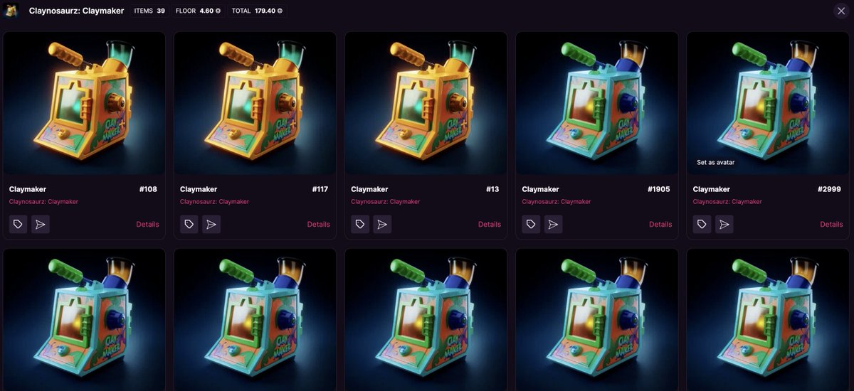 Saw @NFT_Doctor33 sweeping @Claynosaurz So I swept some Claymakers! These will be pivotal in the next phase of Clayosaurz and are still underpriced! Reminder... Claymakers are deflationary! Deflationary! First = Single Use Deluxe = Five Uses Limited = Unlimited Uses