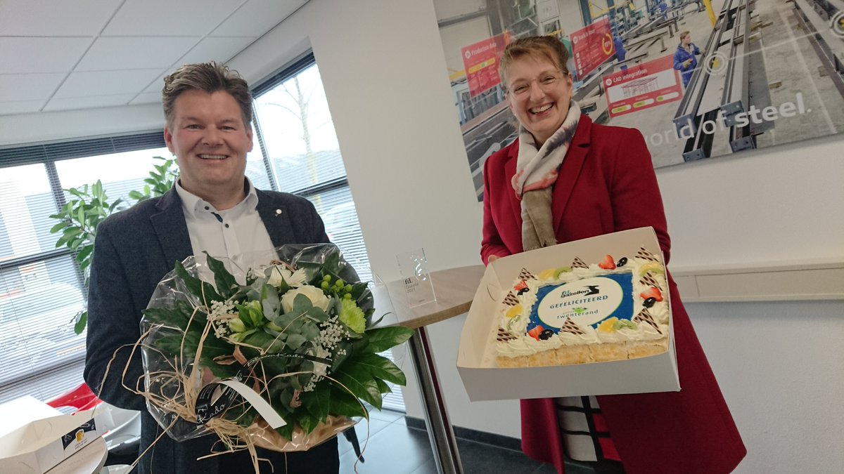 Wij zijn blij verrast door wethouder Martha van Abbema van de Gemeente Twenterand met een bezoek aan ConstruSteel 👏🏼 Ter gelegenheid van het behalen van de FD Gazelle Award ontvingen wij taart en een mooie bos bloemen! 💐🍰Hartelijk dank nogmaals! #trotsoponsteam #ConstruSteel